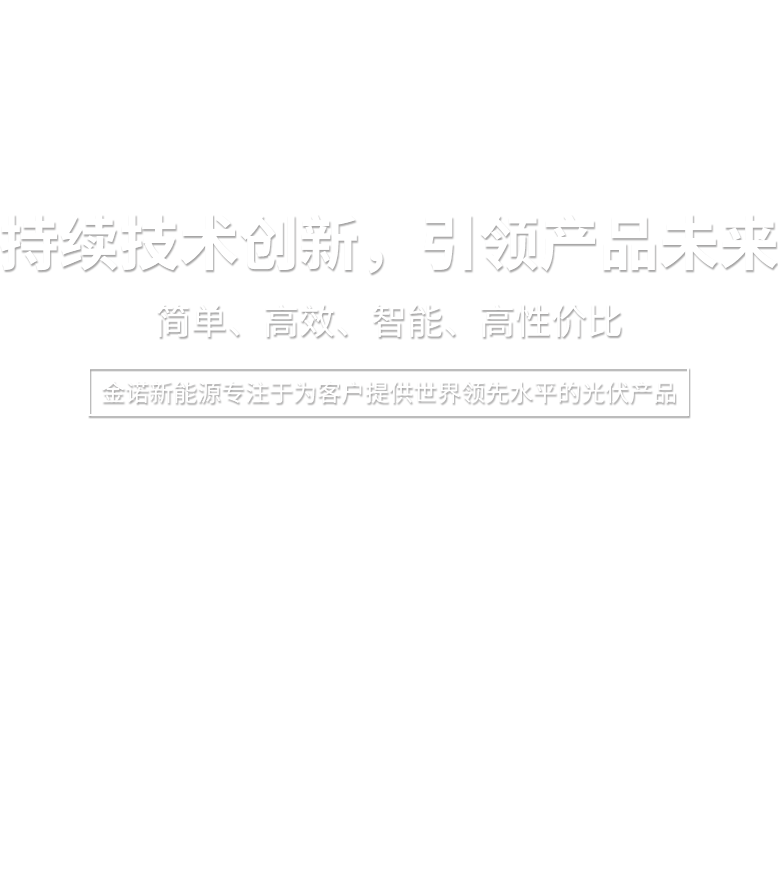 金諾新能源專注于為客戶提供世界領(lǐng)先水平的光伏產(chǎn)品,大力實(shí)施科技創(chuàng)新。我們秉持“品質(zhì)為先,服務(wù)全球”的理念,為客戶創(chuàng)造更高價值,并與您分享世界綠色能源在陽光下的成長喜悅!